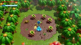 イトチュラを使って登った後デクババを剣士モードの剣を使って倒し、奥のブロックをバクダンで壊してトリィの仲間を助けましょう。助けたら洞窟の入り口まで戻ります。