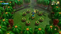 開始地点から足場を繋いでいるクモの巣を渡り、花の魔物の奥にあるクモの巣を燃やしてトリィの仲間を助けましょう。