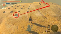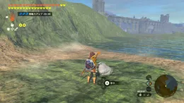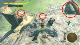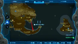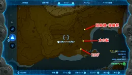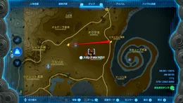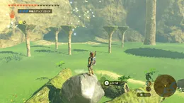 コログNo.47 砦の壁の上にある岩を持ち上げる(魔物に遭遇したくない場合はロケット盾などを使うか、監視塔鳥望台から飛んで直接行くのがおすすめ) ![]() | 大きな地図で見る |