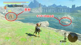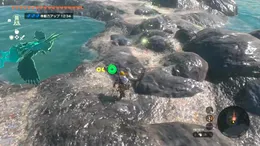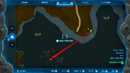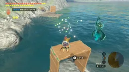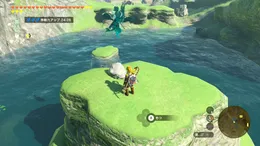 コログNo.887 小島にある切り株に乗った後、ダイビングしてキラキラを追いかけて調べる(小島へはジョシウの祠がある島の発射台を使うと行ける) ![]() | 大きな地図で見る |
