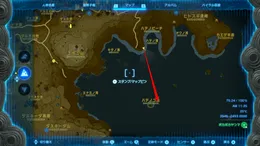 コログNo.879 小島にある切り株に乗った後、ダイビングしてキラキラを追いかけて調べる(小島へはナタカカの祠がある島の発射台を使うと行ける) ![]() | 大きな地図で見る |