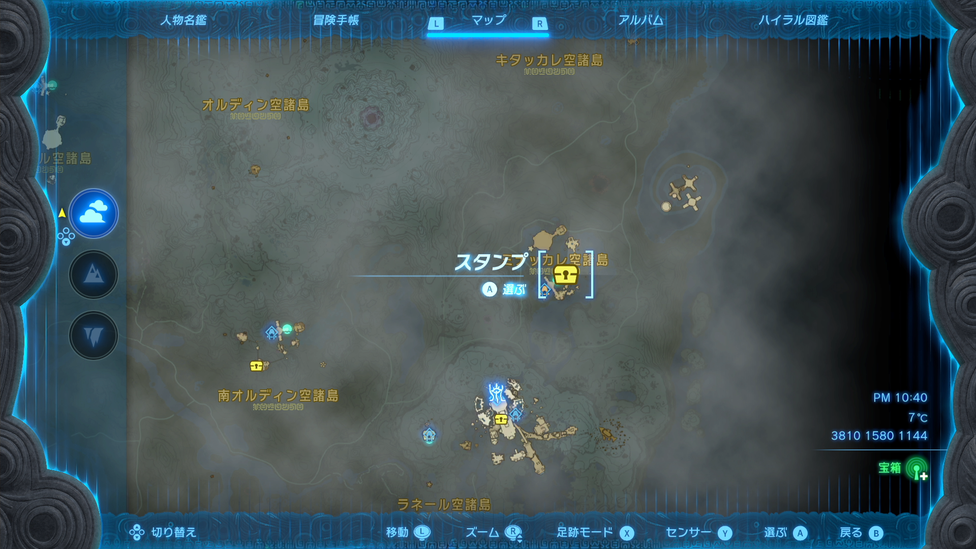 【行き方】 ゾーラの鎧 があるなら カルーガ峠 鳥望台 から飛び上がり、南東にある空島から流れている滝を登って北タバンタ空諸島へ上陸。落ちているゾナウギアやトロッコを使って西の孤島へ。滝を使わない場合は ガアヒササの祠 から北へパラセールで飛ぶ。 【ギミック】謎解き・戦闘なし |