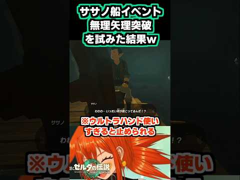 - 一旦ササノと会話してから、洞窟内に置かれているいかだをウルトラハンドで水面に浮かべる