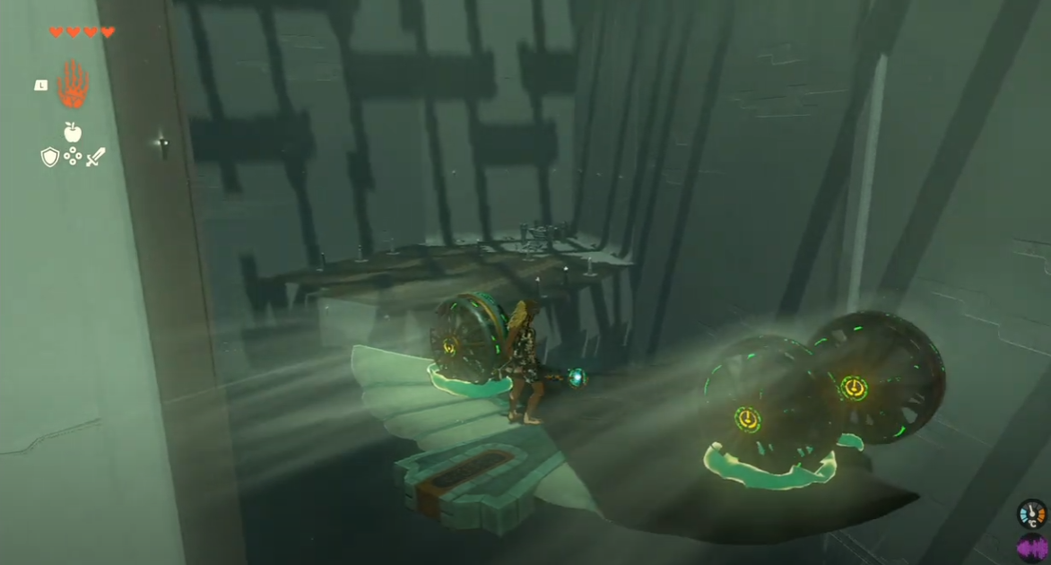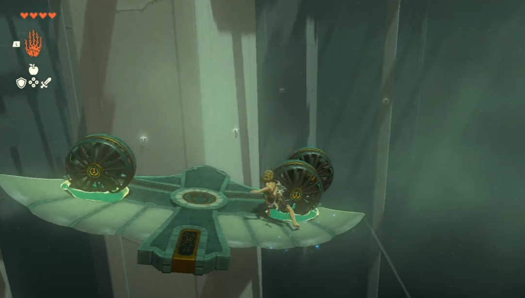 ↳手前側のカタパルトで飛行機に乗り、進行方向を見ると右側にあたる翼にウルトラハンドで扇風機を1つ追加して剣などで叩く - 飛行機発射後