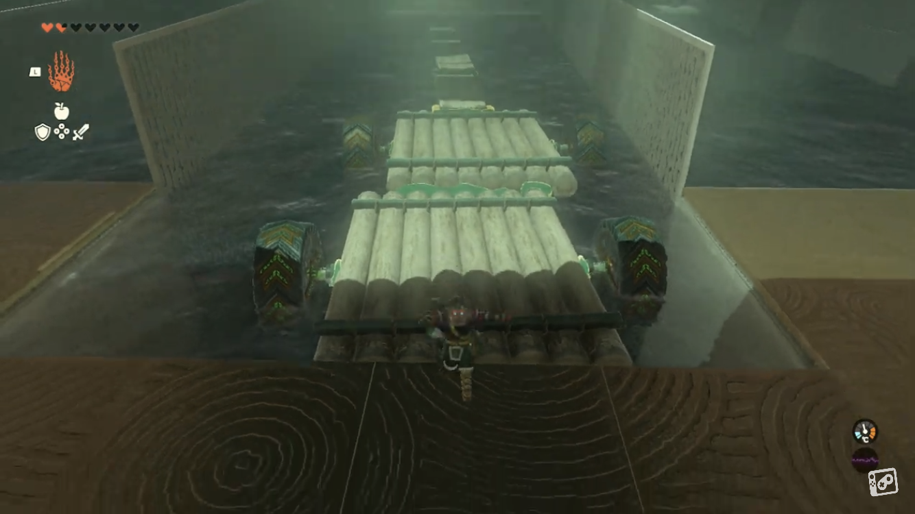丸太部分に板がかからないように気を付ける - タイヤを片手剣か木の矢で叩きイカダを進める