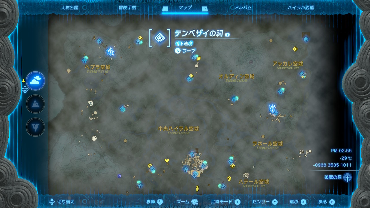 ゼルダの伝説 ティアーズオブザキングダム(ティアキン/TOTK)に登場する試練の祠「テンベザイの祠-落下速度」の場所や手に入るアイテムなどの攻略情報を掲載しています。