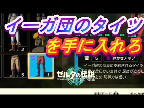 ゼルダの伝説 ティアーズオブザキングダム(ティアキン/TOTK)に登場するアイテム「イーガ団タイツ」の効果・能力、入手方法、使い道などを紹介しています。