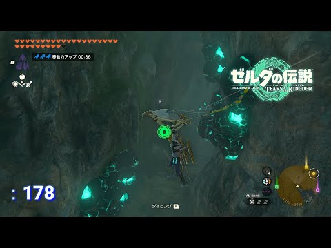 広い岩場が足場となっている地点に着地する。天井部分を見上げるとマヨイがいるので弓で撃ち落として倒す。 マヨイを倒した地点によっては、マヨイの落とし物が下に落ちていき回収しづらいので注意 |