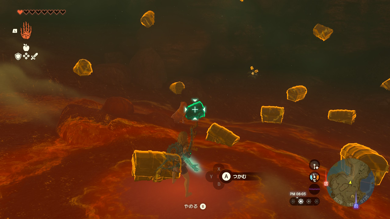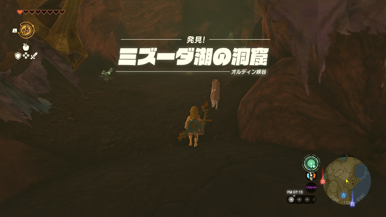 ミズーダ湖の洞窟内に入る 洞窟の入り口前にいるハイリア犬を連れて行くと簡単に宝箱が見つかる ハイリア犬にはリンゴを4個or金リンゴ1個あげると懐く |